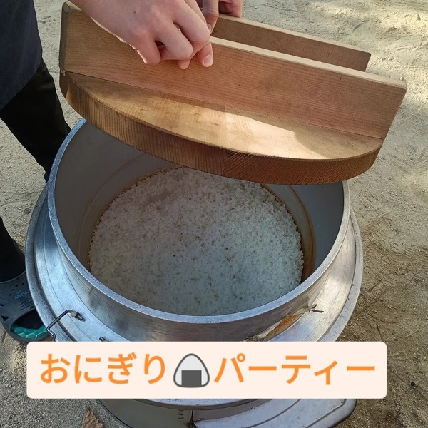 おにぎりの具材は「鮭・昆布・梅」海苔を巻いて「いただきま〜す!」