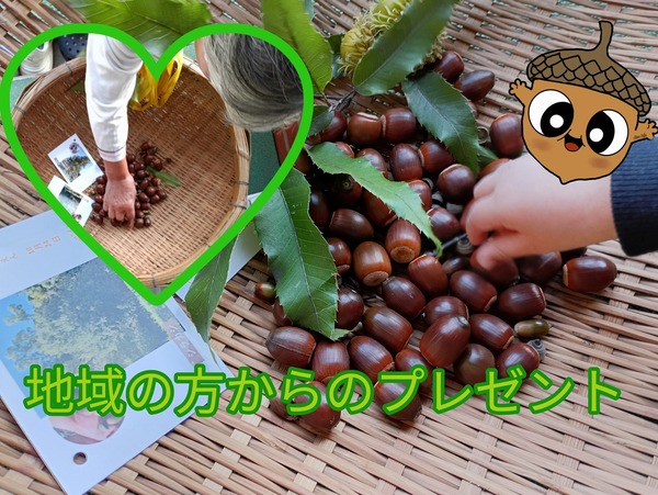 地域の方から秋の恵みのプレゼント〜「公園のどんぐりと違うね」と興味津々の子ども達!いつも自然いっぱいの心温まる世界を届けてくださりありがとうございます。