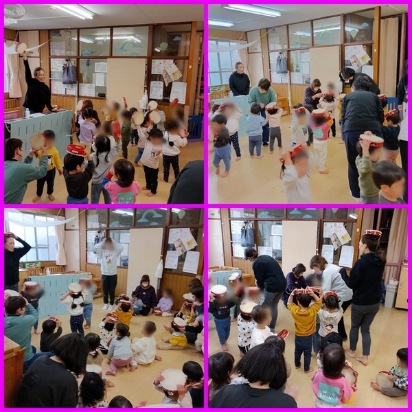| 毎年北巣本保育園さんにご招待いただいている「クニさんミカちゃんクリスマスコンサート」♪歌ったり踊ったり自然と笑顔がつながり、ニコニコハッピーなひとときでした。その後すぎ組のペアのお友だちとお昼ご飯・・・う〜ん美味しい!近くの公園で一緒に遊具で遊んだ後、おやつの「パンバイキング」1つひとつが素敵な思い出になりましたね。 | ||